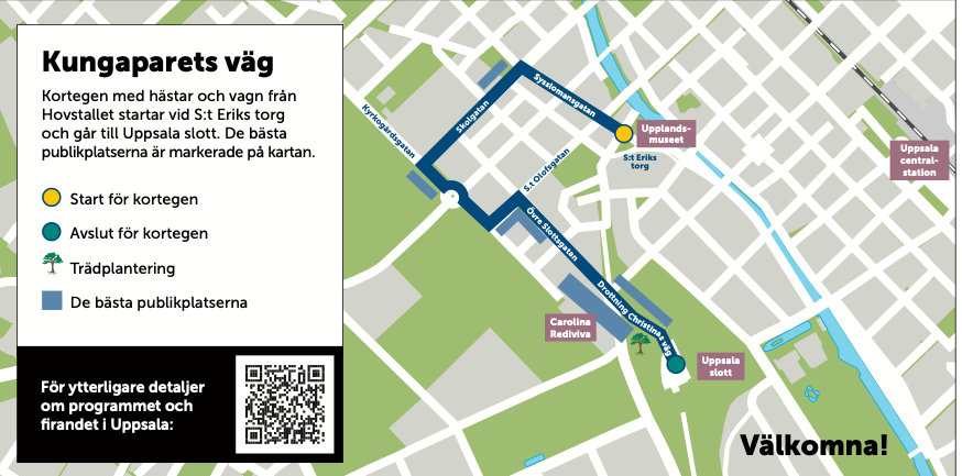 - Kl. 10.50 Samling utanför Upplandsmuseet för att följa Kungaparet till S:t Eriks torg