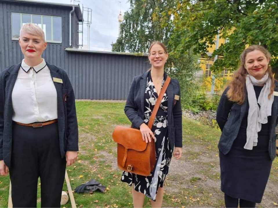 Överintendent Lars Amréus vid Statens maritima och transporthistoriska museer, museichef Odd Johansen och samordnare Lovisa Ehlin välkomnade Kungen.